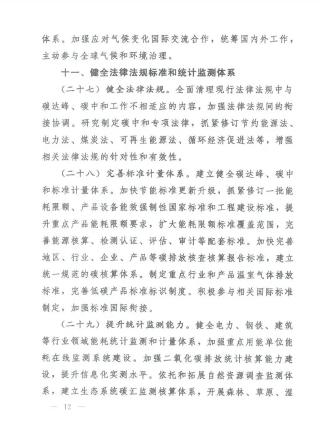 (十八)大力發(fā)展節(jié)能低碳建筑。持續(xù)提高新建建筑節(jié)能標(biāo)準(zhǔn),加快推進(jìn)超低能耗、近零能耗、低碳建筑規(guī)?;l(fā)展。大力推進(jìn)城鎮(zhèn)既有建筑和市政基礎(chǔ)設(shè)施節(jié)能改造,提升建筑節(jié)能低碳水平。逐步開(kāi)展建筑能耗限額管理,推行建筑能效測(cè)評(píng)標(biāo)識(shí),開(kāi)展建筑領(lǐng)域低碳發(fā)展績(jī)效評(píng)估。全面推廣綠色低碳建材,推動(dòng)建筑材料循環(huán)利用。發(fā)展綠色農(nóng)房。