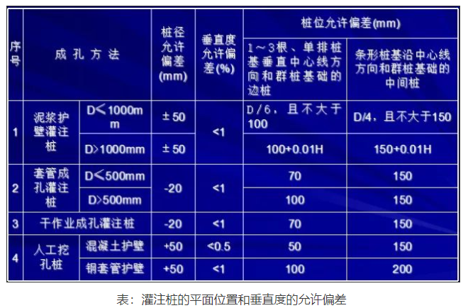 2.5 灌注樁施工質(zhì)量要求及完全技術(shù)