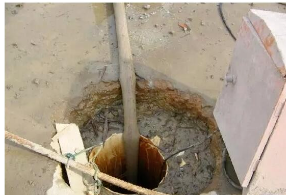 ③清孔: 鉆孔施工到預定深度后進行抽渣清孔, 保證孔內(nèi)水位高度, 使泥漿比重保持在 3cm。